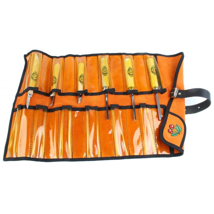 Etui dedykowane jest do przechowywania dłut rzeźbiarskich oraz noży rzeźbiarskich, ale może być również wykorzystywane do innych narzędzi o wąskich rękojeściach.