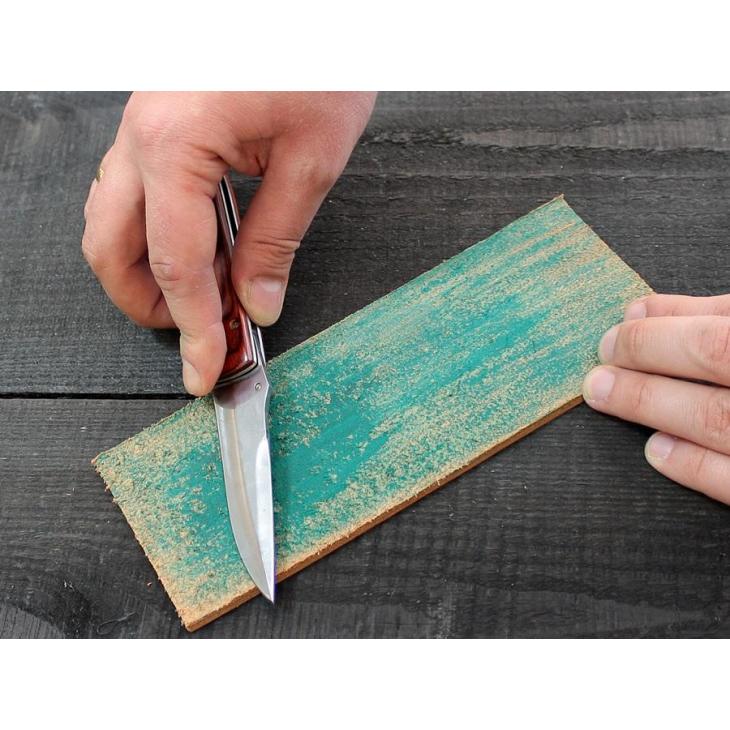 Skórzany pas ze środkiem do polerowania dobrze sprawdza się również do ostrzenia noży kuchennych, brzytew, myśliwskich i wędkarskich noży, sztyletów, noży rzeźbiarskich i innych