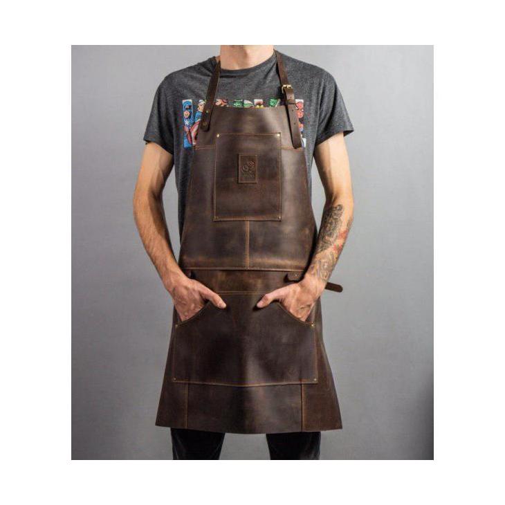 Efektowny fartuch wykonany ze skóry naturalnej.
