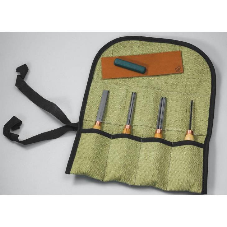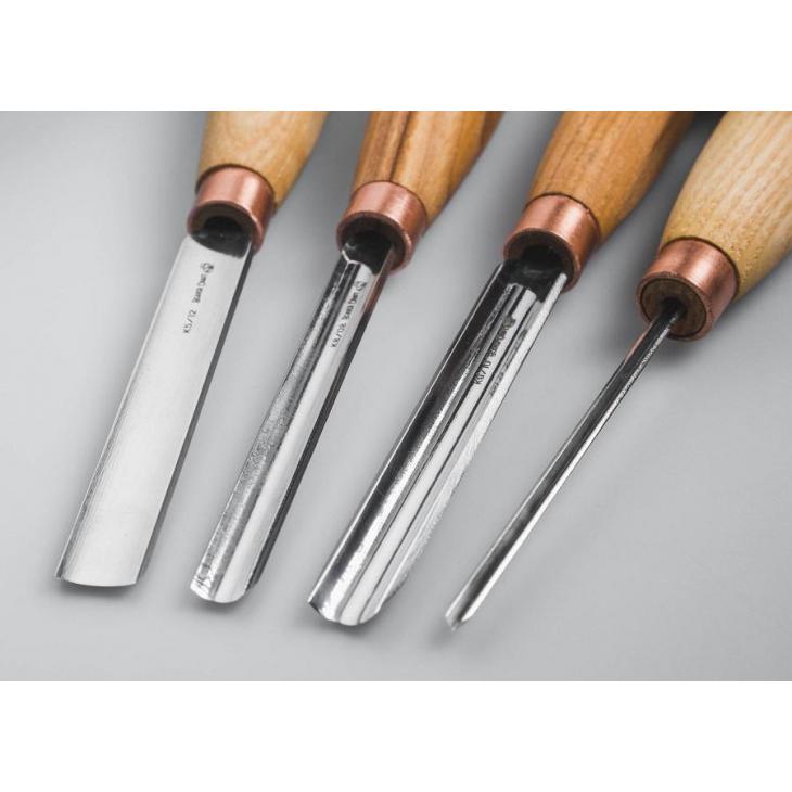 Jesionowe trzonki dłut są lekko woskowane, aby je chronić, zachowując jednocześnie ich naturalny kolor. Wszystkie dłuta w zestawie wyposażone są w mniejsze rękojeści, które klienci oceniają jako wygodniejsze w użytkowaniu niż większe. Wszystkie narzędzia są odpowiednio naostrzone i gotowe do pracy zaraz po wyjęciu z pudełka. Dodatkowo etui narzędzi do przechowywania i transportu. Zestaw zawiera również skórzany pasek i pastę polerską, dzięki której narzędzia mogą zostać ponownie naostrzone, gdy zajdzie taka potrzeba.