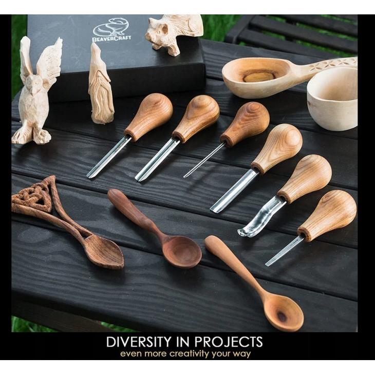 Ostrza narzędzi BeaverCraft wykonane są z wysokiej jakości stali stopowej bromowo-wanadowej, utwardzanej do 57-58 HRC. Ostrza narzędzi dobrze zachowują ostrość a jednocześnie są dość łatwe w ostrzeniu/polerowaniu. Ergonomiczne rękojeści narzędzi wykonane są z twardych gatunków drewna (jesion, dąb) i są zabezpieczone olejem lnianym przez producenta.