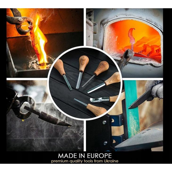 Narzędzia są przystosowane do rzeźbienia miękkiego i twardego drewna.