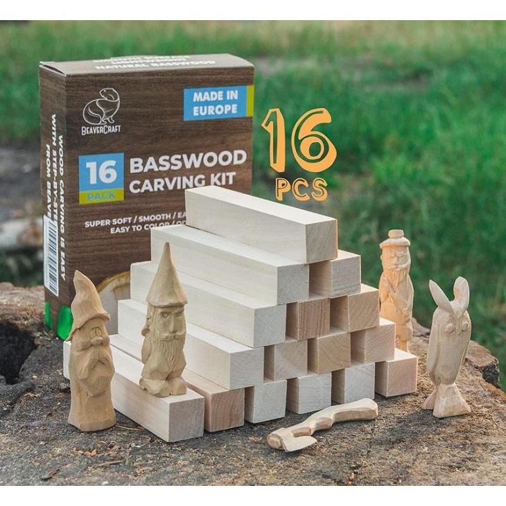 OGROMNY ZESTAW DREWNIANYCH KLOCKÓW RZEŹBIARSKICH. Nasze drewno lipowe do rzeźbienia jest doskonałym materiałem niezależnie od poziomu umiejętności. Będziesz mógł ćwiczyć i doskonalić się, jeśli jesteś początkujący lub rozwijać nowe podejścia i doskonalić swoje umiejętności, jeśli już wiesz, co robisz. Drewno jest bez wątpienia bardzo ważną częścią rzeźbienia i wiemy, że nie będziesz zawiedziony.