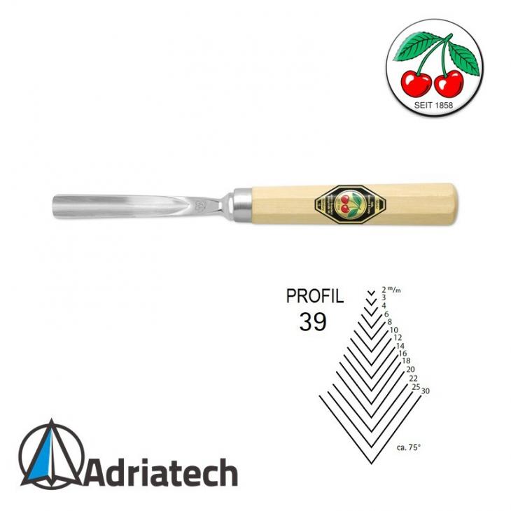 Dłuto snycerskie wygięte firmy KIRSCHEN - typu V, profil 39, szerokość ostrza 4mm (3240004)