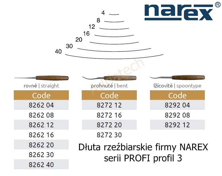 Dłuto rzeźbiarskie wygięte serii PROFI NAREX - profil 3 o szerokości 20 mm