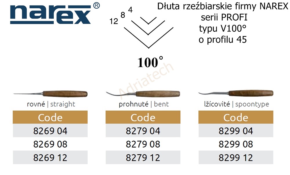 Dłuto rzeźbiarskie serii PROFI NAREX - typu V100° profil 45 o szerokości 4 mm