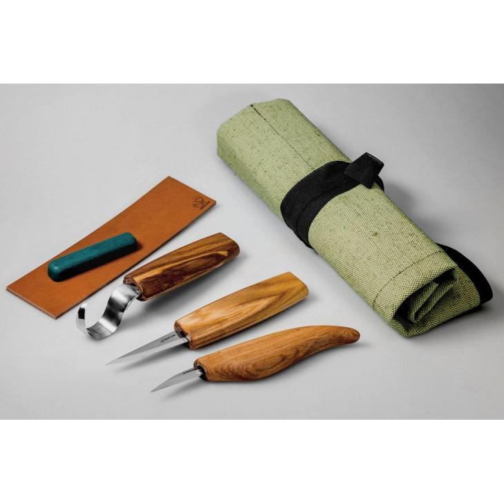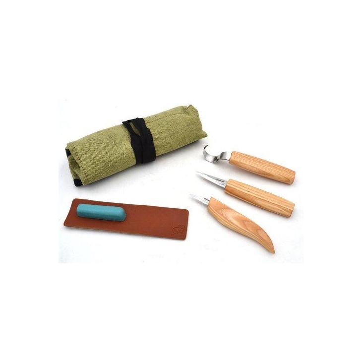 Zestaw noże rzeźbiarskie do wykonywania łyżek z nożem do łyżek 3 szt + akcesoria polerskie Beavercraft S17