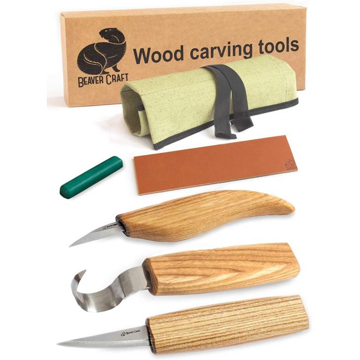 Beavercraft Zestaw do rzeźbienia 3 szt nóż, nóż do łyżek, dłuto S14