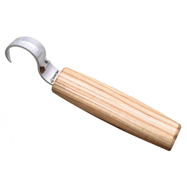 Nóż hakowy do łyżek posiada ostrze w kształcie litery U i służy do wybierania materiału przy tworzeniu łyżek, mis, kuks i innych przyborów i naczyń. Ostrze noża posiada krawędź tnącą do samego końca ostrza, druga strona ostrza jest tępa i płaska – służy ona do popychania narzędzia kciukiem podczas rzeźbienia. Nóż do cięcia zarówno twardego jak i miękkiego drewna. Do noża SK1 dostępny jest dedykowany pokrowiec z naturalnej skóry bydlęcej (produkt BeaverCraft SH5)