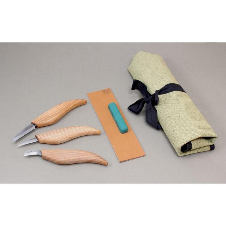 Beavercraft Zestaw 3 noży do rzeźbienia z akcesoriami polerskimi w etui S15