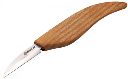 Mały noż rzeźbiarski do ryzowania C6:Nóż o krótkim ostrzu przeznaczony do ryzowania (rzeźby geometrycznej), Pozwala na wycinanie różnych powtarzalnych kształtów: trójkątów, kwadratów, linii. Z jego pomocą wykonany elementy zdobnicze, litery i inne skomplikowane figury w drewnie i innych materiałach. Profilowana rękojeść z jesionu pozwala na dłuższą pracę bez zmęczenia.