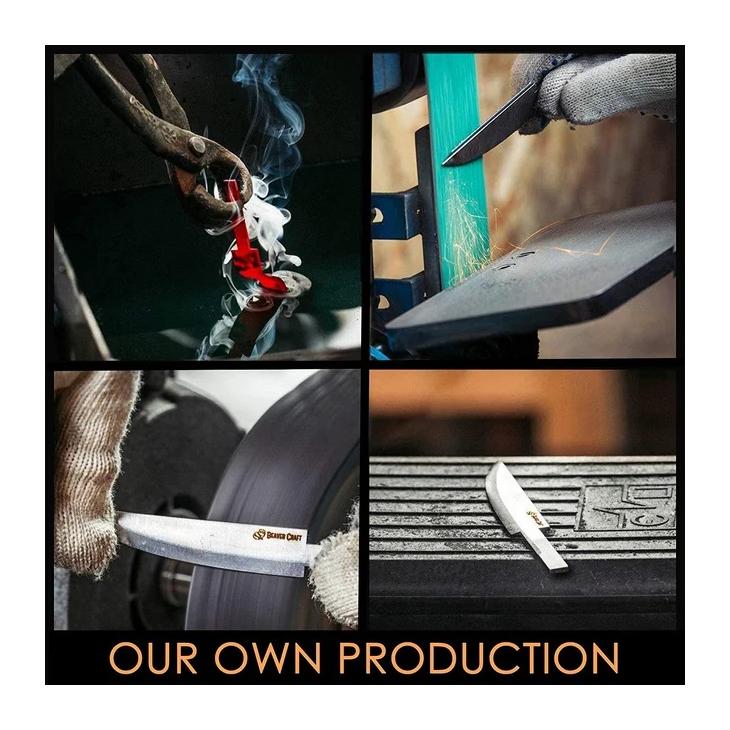 Ostrza narzędzi BeaverCraft wykonane są z wysokiej jakości stali stopowej bromowo-wanadowej, utwardzanej do 57-58 HRC. Ostrza narzędzi dobrze zachowują ostrość a jednocześnie są dość łatwe w ostrzeniu/polerowaniu. Ergonomiczne rękojeści narzędzi wykonane są z twardych gatunków drewna (jesion, dąb) i są zabezpieczone olejem lnianym przez producenta.