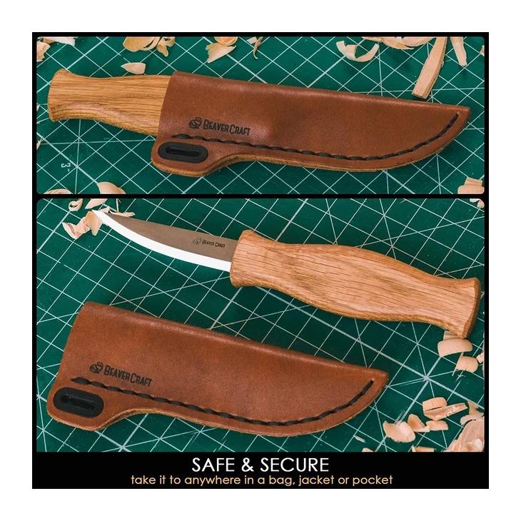 Nóż C4 Whittling Sloyd, otrzymujesz teraz w zestawie z wytrzymałym skórzanym etui. Ten przemyślany dodatek nie tylko chroni ostrze noża, ale także zapewnia ochronę przed przypadkowymi skaleczeniami podczas procesu twórczego.