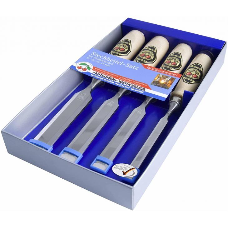 Dłuta stolarskie firmy Kirschen zestaw 4 szt - 10, 16, 20, 26 mm w kartonowym opakowaniu
