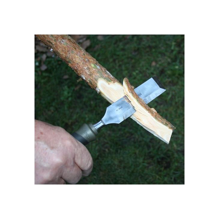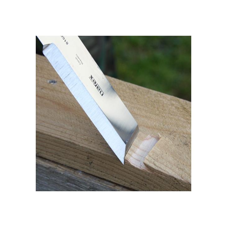 Wysokiej jakości, profesjonalne wielofunkcyjne dłuto MULTI z boczną krawędzią tnącą. Może znależć zastosowanie m.in. przy dłutowaniu, cięciu, rozłupywaniu, okorowywaniu, ostrzeniu, skrobaniu, złobieniu itp. Kute ostrza ze stali chromowo-manganowej są hartowane do uzyskania twardości 59HRc. Rękojeść dwukomponentowa - twardy rdzeń z PP oraz miękka część z tworzywa termoplastycznego TPE pozwala na komfortową pracę. Owalny przekrój rękojeści oraz wyprofilowany kształt dodatkowo ułatwiają pewny chwyt narzędzia.