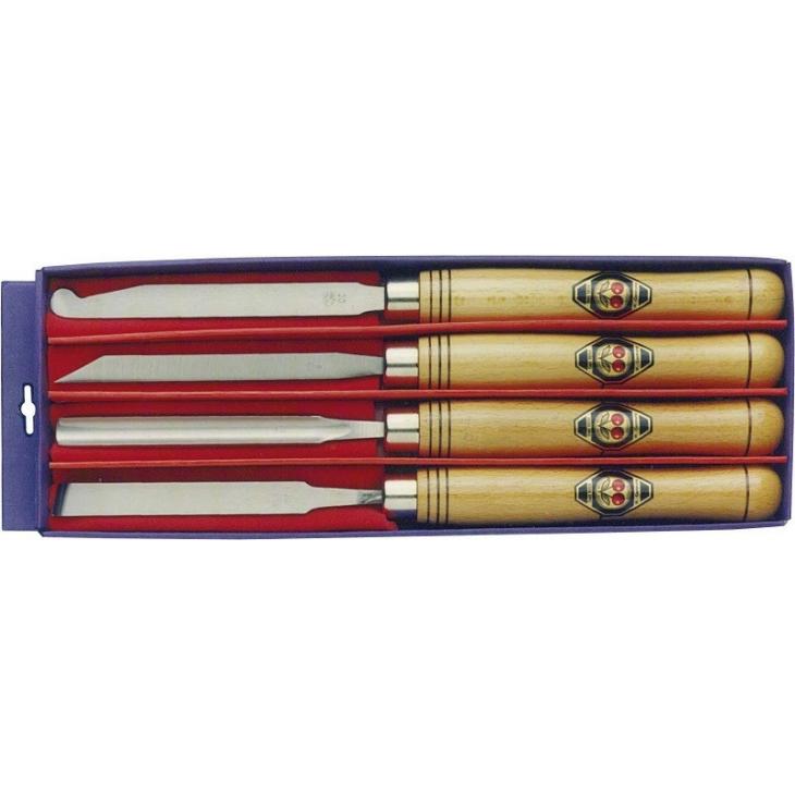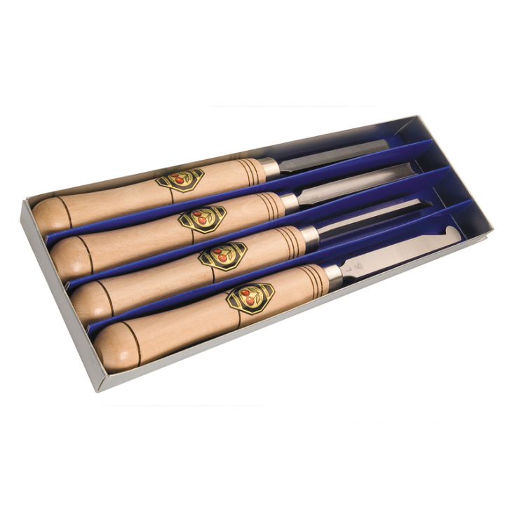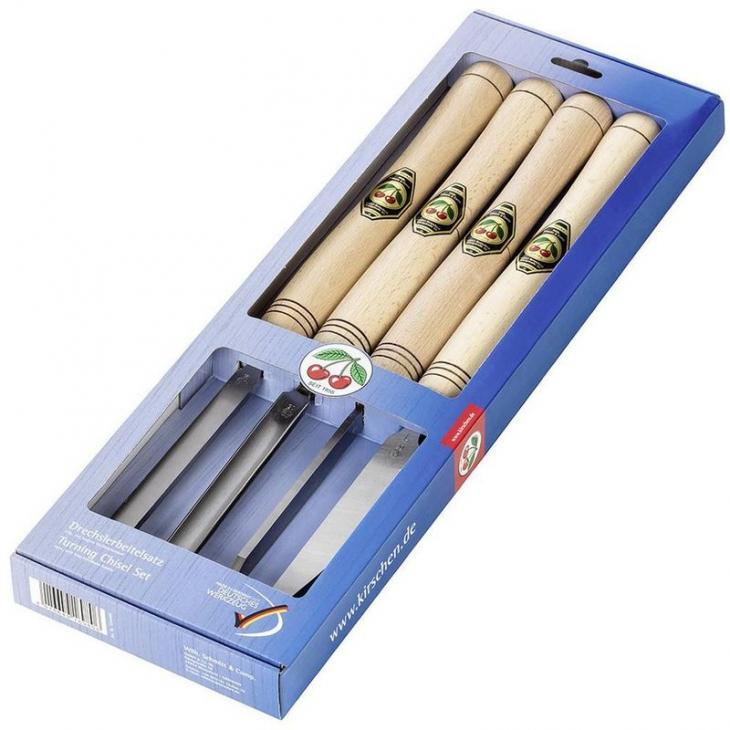 Komplet dłut tokarskich Kirschen o długich rękojeściach. Dłuta z bardzo dobrej jakości stali z grabową rękojeścią.