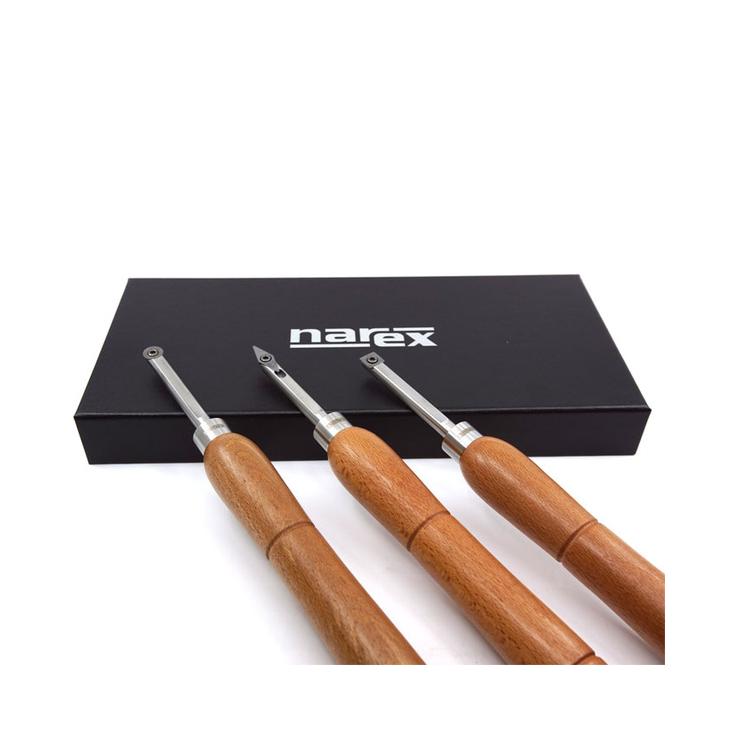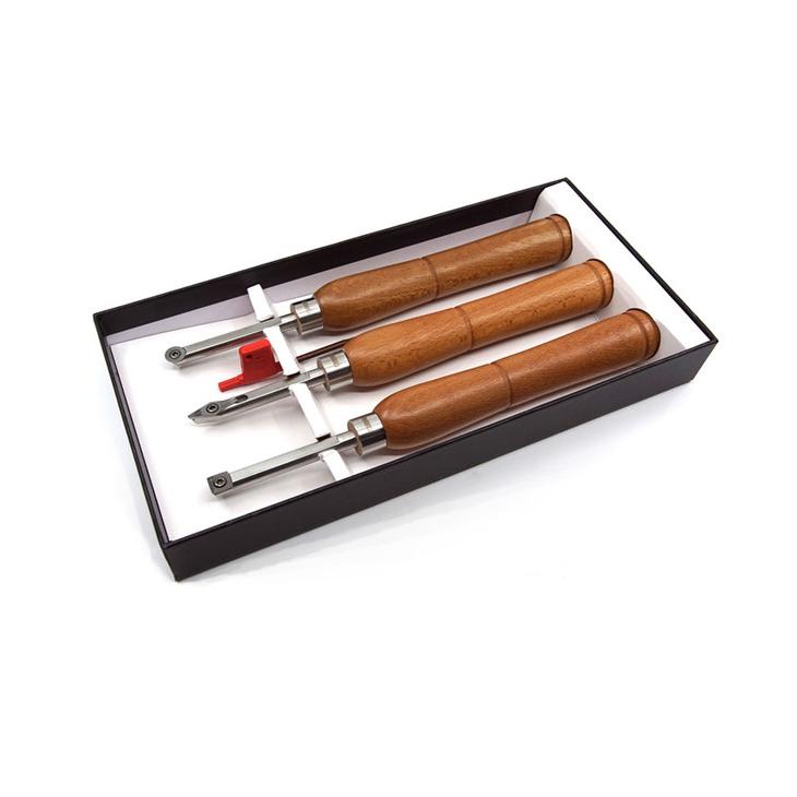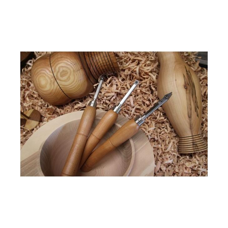 Zestaw dłut do toczenia drewna z końcówkami z węglików spiekanych, dostosowany do mniejszych prac, oferuje kilka zalet w tym zwiększoną trwałość i lepszą wydajność cięcia.