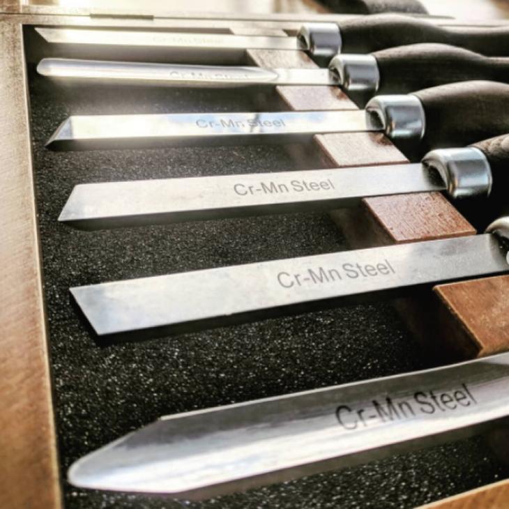 Dłuta dostarczane w tym zestawie mają rekojeści barwione na ciemno