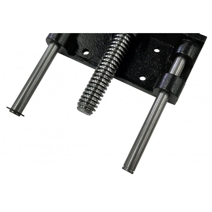 Pierścień zabezpieczający na jednym z dwóch prętów prowadzących zapobiega upadkowi sprzętu na ziemię, jeśli zdarzy się, że całkowicie wysuniesz imadło. Tylko jeden pręt prowadzący jest wyposażony w pierścień zabezpieczający. Jeden pierścień zabezpieczający skutecznie zapobiegnie upadkowi imadła na ziemię.