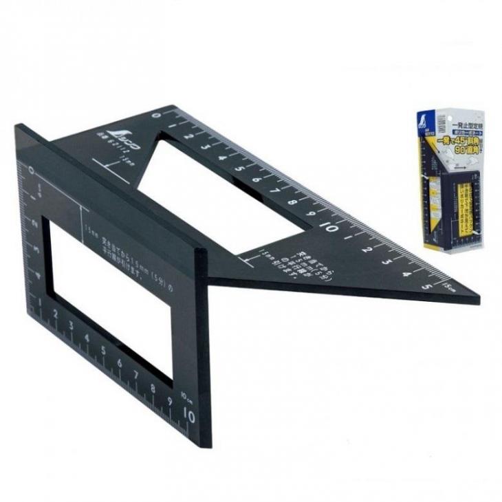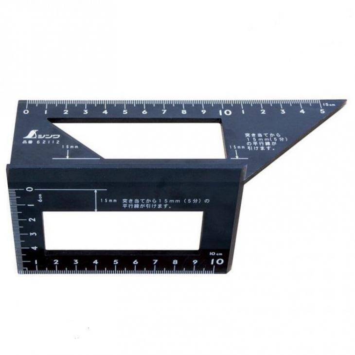 - Aluminiowy kątownik Shinwa 3D jest zaprojektowany, aby ułatwiać szybkie i dokładne cięcie pod kątem 45- i 90-stopni, co umożliwia precyzyjne cięcie poprzeczne i cięcie po skosach.