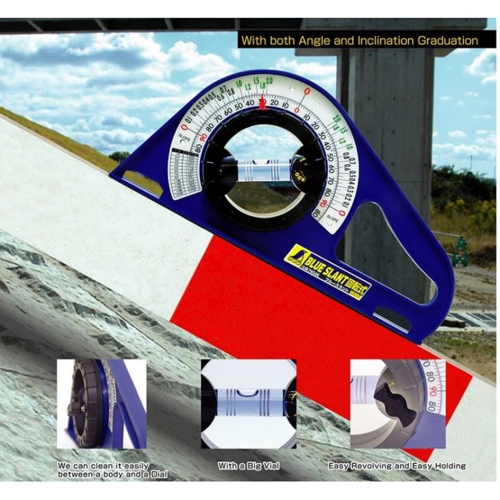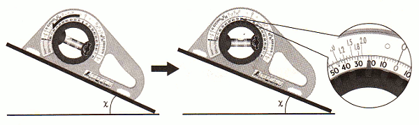 - Wyskalowany w stopniach, dodatkowa dwustronna skala do uzyskania odpowiedniej proporcji pomiędzy pionem a poziomem.