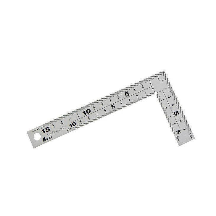 Kątownik japoński kąt 90° posiada 8 skali na obu ramionach 15x7,5cm ze stali nierdzewnej firmy SHINWA