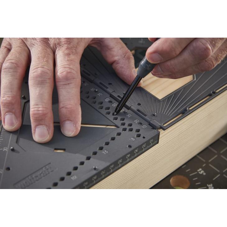 Milimetrowa skala, ograniczniki dla kątów 45° i 90° oraz skala dla dowolnych kątów od 0 do 180° umożliwiają precyzyjne wyrównanie i znakowanie. Ponadto kątownik japoński służy jako znacznik stolarski do trasowania linii równoległych.