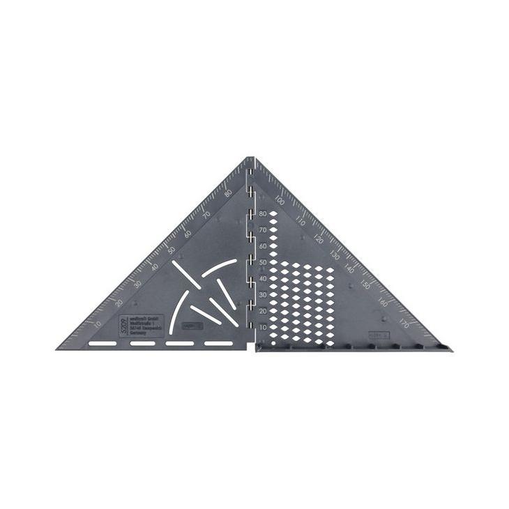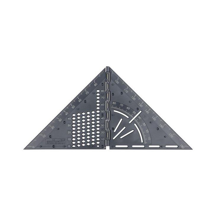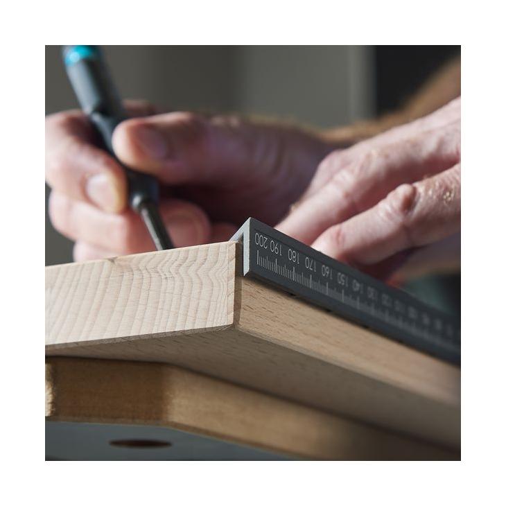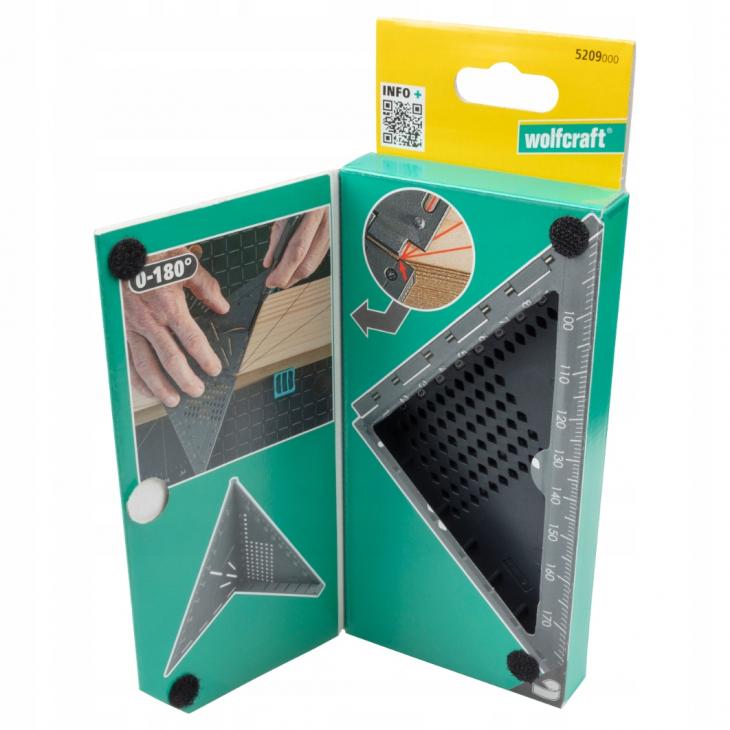 Milimetrowa skala, ograniczniki dla kątów 45° i 90° oraz skala dla dowolnych kątów od 0 do 180° umożliwiają precyzyjne wyrównanie i znakowanie.