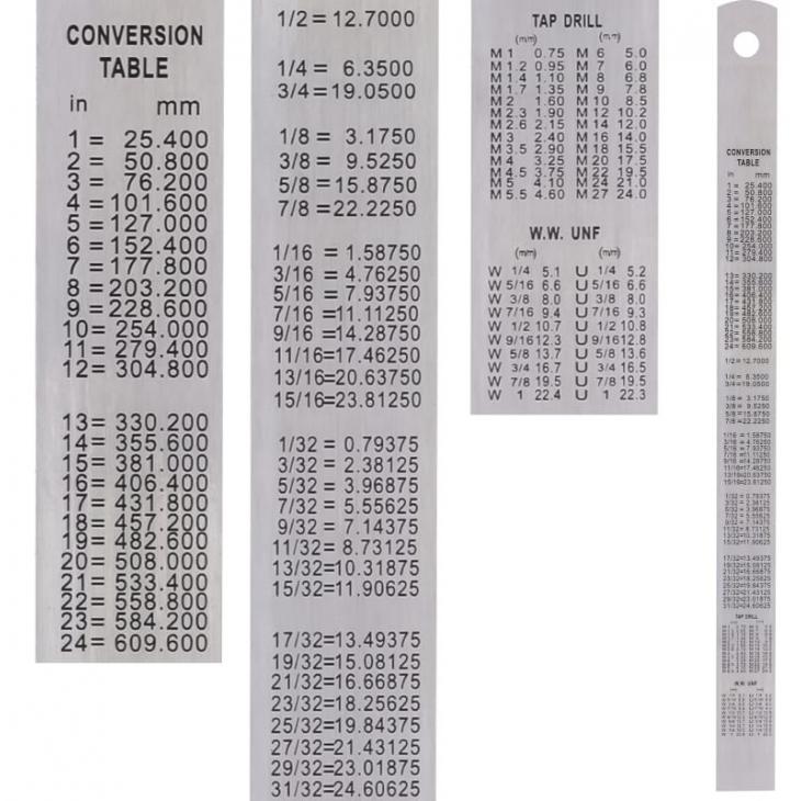 - na odwrocie tabela przeliczeniowa cali i gwintów