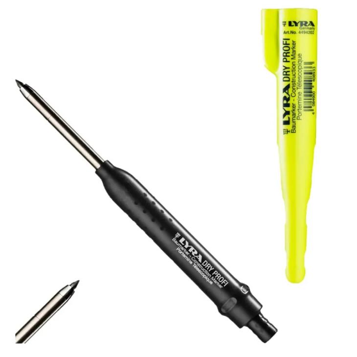 Lyra Dry Profi to prosty w budowie znacznik który pomaga podczas wszelkich prac budowlanych, stolarskich, instalatorskich oraz podczas domowego majsterkowania. Do profesjonalnego znakowania na wszystkich powierzchniach (drewno, metal, plastik, szkło, ceramika...).