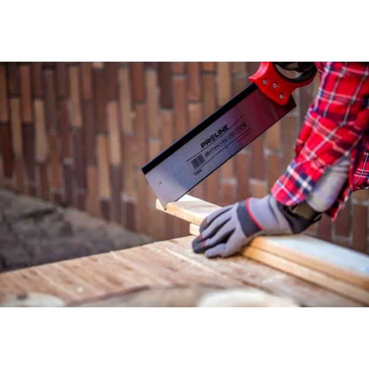 Uzębienie hartowane indukcyjnie 56 +/- 2HRC. Rękojeść dwuskładnikowa z tworzywa z wkładką antypoślizgową. Do cięcia wykańczającego do drewna, płyty wiórowej, sklejki, laminatu, plastiku zgrubnego i płyty wiórowej.