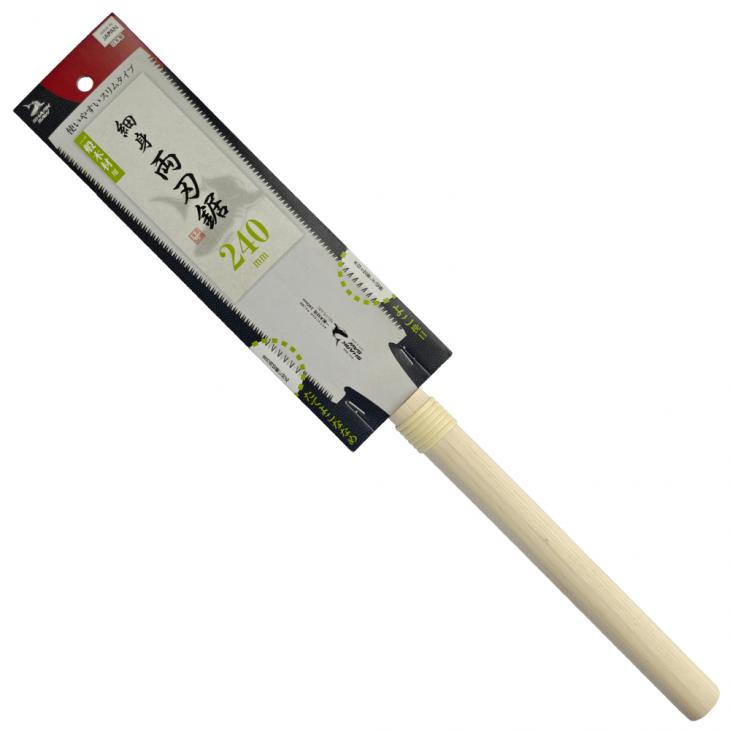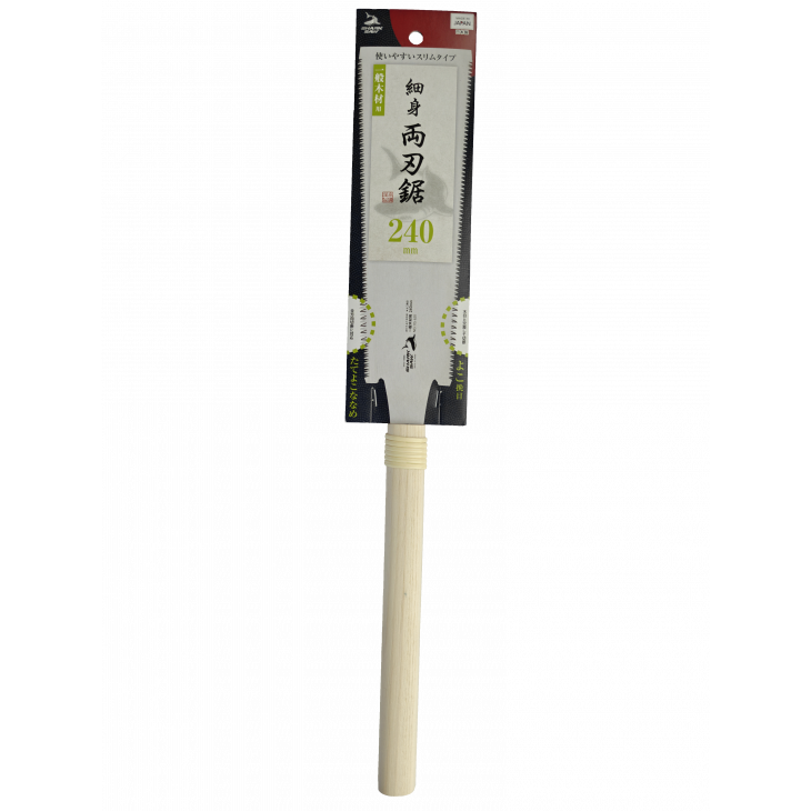 Tradycyjna piła Ryoba o doskonałych właściwościach piłowania i szerokim zakresie zastosowań. Do cięcia wzdłużnego i poprzecznego. Dwustronny brzeszczot (zgrubne i średnio drobne cięcie). Wykonana z wysokiej jakości stali węglowej SK-85 i odpowiednia do wszystkich prac stolarskich związanych z cięciem. Ma trochę grubszy brzeszczot od tradycyjnych pił japońskich (0,60 mm) przez co ta japońska piła jest idealna dla tych, którzy mają niewielkie lub żadne doświadczenie z tradycyjnymi piłami Ryoba. Lekka rękojeść wzmacniana częściowo ratanowym oplotem.Użyj tej japońskiej piły do poprzecznego lub wzdłużnego cięcia zarówno miękkiego jak i szlachetnego i twardego drewna.
