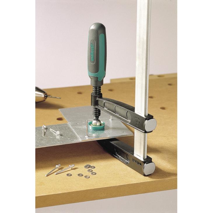 - Spodnia część szczęk oraz zewnętrzna strona górnej szczęki wykończone na płasko ułatwiają użycie narzędzia podczas sklejania