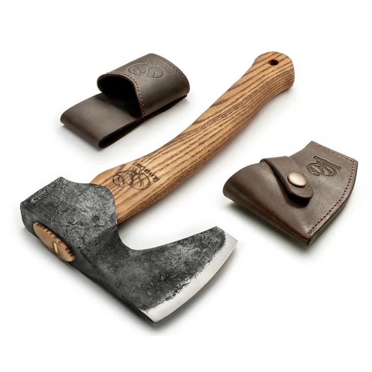 AX6 może poszczycić się solidną, ergonomiczną rączką wykonaną z pięknego drewna jesionowego, zapewniającą optymalny chwyt i kontrolę przy skomplikowanych zadaniach, takich jak rzeźbienie w drewnie. Jest impregnowany olejem lnianym i woskiem, aby poprawić jego trwałość i odporność na czynniki atmosferyczne. Ten mini toporek typu bushcraft jest wyposażony w pochwę ze skóry bydlęcej i szlufkę, która chroni ostrze i zapewnia łatwe przenoszenie. Niezależnie od tego, czy wybierasz się na weekend do lasu, czy na dłuższą przygodę w buszu, ten wielofunkcyjny toporek jest gotowy, aby Ci towarzyszyć.