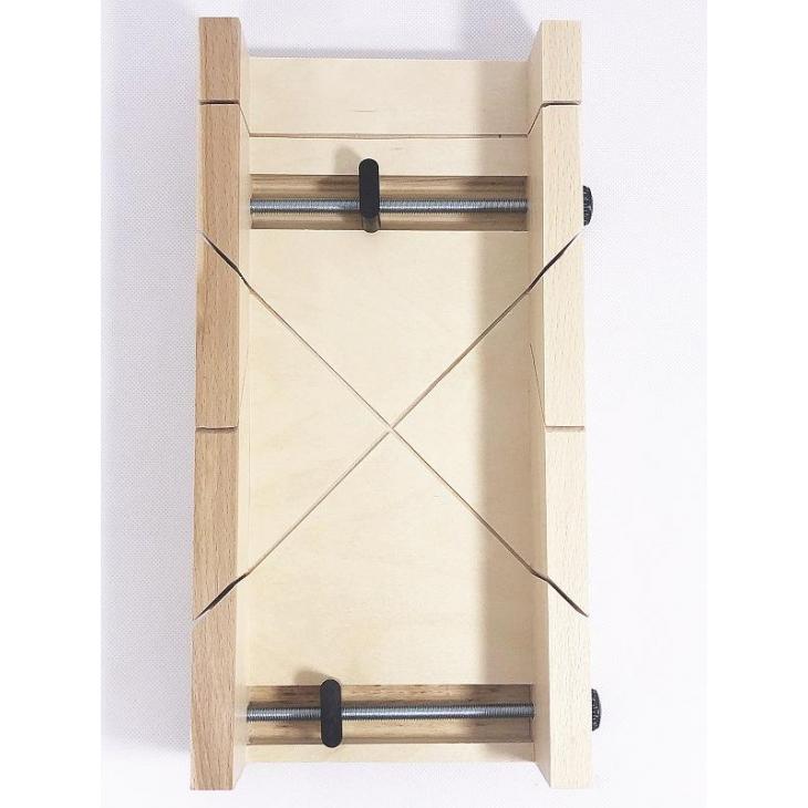Skrzynka uciosowa służy do cięcia pod kątem 90 ° i 45 °. Wyposażona w dwa ściski mocujące obrabiany przedmiot. Wykonana z drewna bukowego oraz połączenia sklejki i drewna. Łączenia klejone i skręcone.
