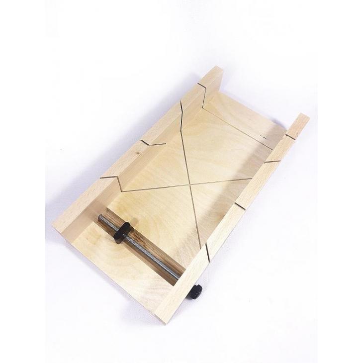 Skrzynka uciosowa, przyrżnia służy do cięcia pod kątem 90 ° i 45 °. Wyposażona w dwa ściski mocujące obrabiany przedmiot. Wykonana z drewna bukowego oraz połączenia sklejki i drewna. Łączenia klejone i skręcone.