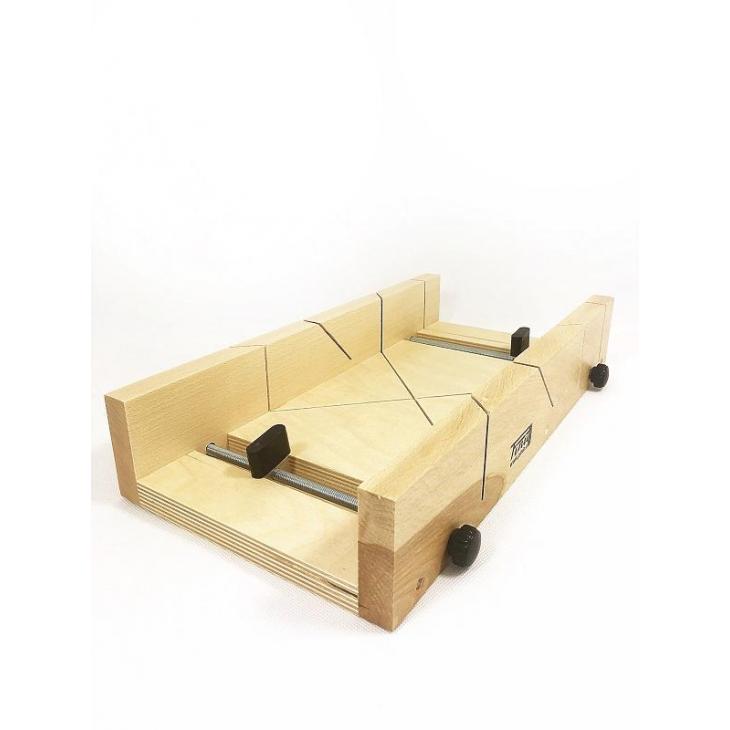 Skrzynka uciosowa służy do cięcia pod kątem 90 ° i 45 °. Wyposażona w dwa ściski mocujące obrabiany przedmiot. Wykonana z drewna bukowego (boki) oraz płyty wiórowej (dół). Łączenia klejone i skręcone.