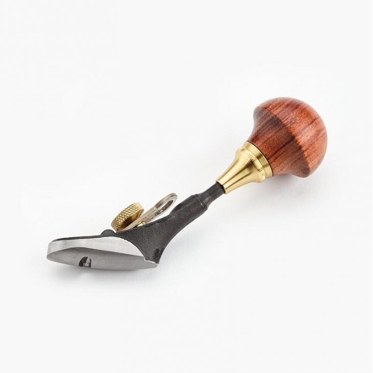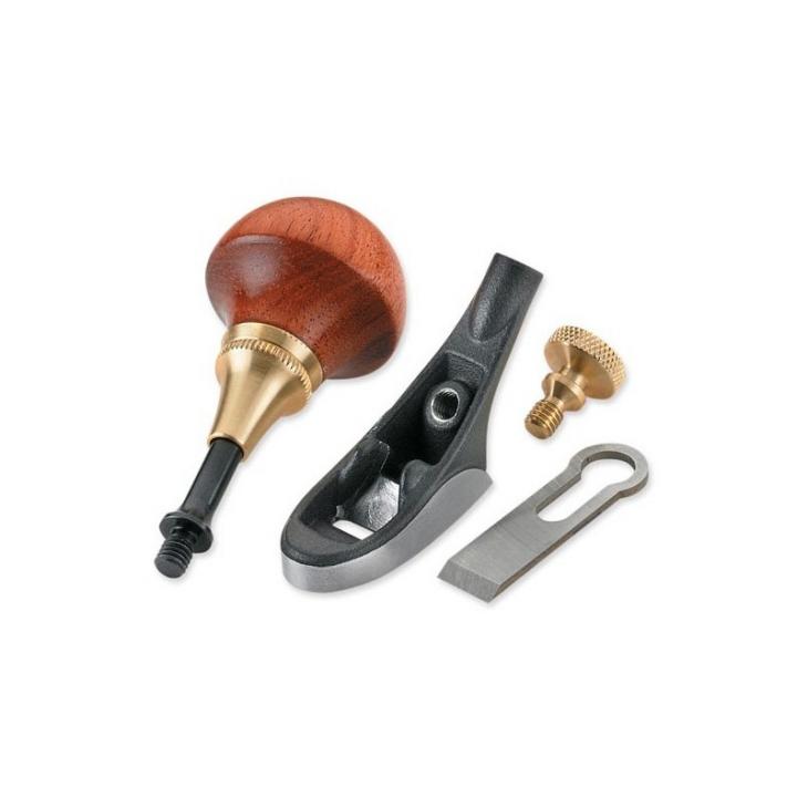 - Korpus ze stali odlewanej metodą precyzyjnego odlewu ma kąt łoża 45° i stałą szyjkę, a do mocowania dołączonego ostrza ze stali narzędziowej A2 o skosie 30° (grubość 0,06" i szerokość 3/8") zastosowano śrubę mocującą z mosiądzu.