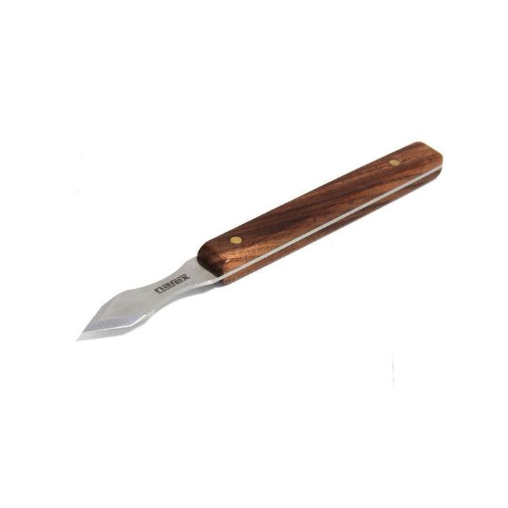 Wysokiej jakości nóż traserski firmy NAREX. Przeznaczony do prac w drewnie, trasowania wzorów. Niezbędne narzędzie do tworzenia śladów na drewnie podczas układania precyzyjnej stolarki lub przenoszenia pomiarów. Ostrze o grubości 2,5 mm umożliwia m.in. nacinanie w słojach drewna linii, służących do oparcia ostrza dłut przy rozpoczynaniu dłutowania.