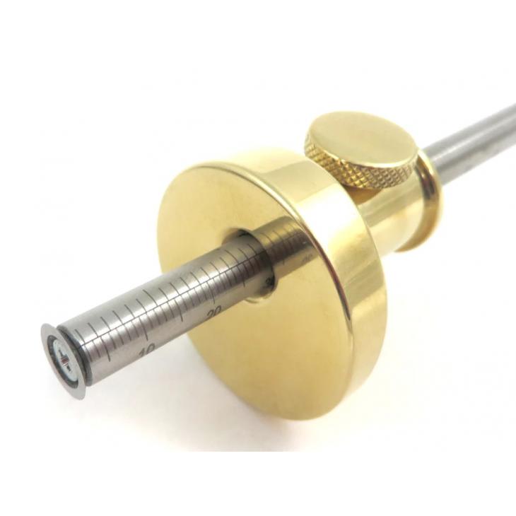 Ten znacznik z litego mosiądzu to kolejny z produktów do obróbki drewna firmy Narex Tools w Czechach. Niecentryczne lub mimośrodowe umieszczenie prowadnicy w głowicy zapewnia większą powierzchnię styczną i zapobiega stoczeniu się znacznika ze stołu warsztatowego. Głowica o średnicy 1-1/2” wykonana jest z precyzyjnie obrobionego litego, polerowanego mosiądzu.