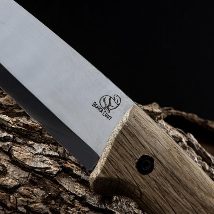 Nóż jest ręcznie wykonany ze stali węglowej, hartowany i dobrze naostrzony. Ostrze noża jest precyzyjnie i estetycznie wykończone, krawędzie polerowane. Logo Beavercraft podkreśla charakter tego ręcznie wykonanego noża. Szlif skandynawski i profil noża (drop point) idealnie predysponują ten nóż do prac biwakowych