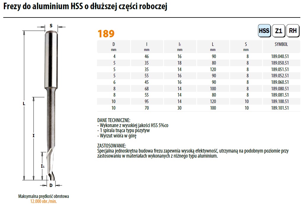 Frezy tej serii przeznaczone są do pracy w aluminium. Specjalna jednoskrętna budowa frezów tego typu zapewnia wysoką efektywność pracy, która utrzymywana jest na podobnym poziomie podczas obróbki różnych typów aluminium.