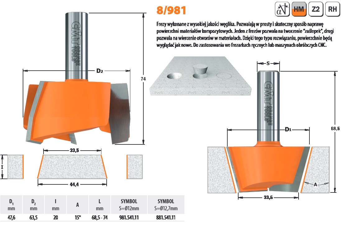 Frezy do do twardych materiałów kompozytowych komplet 2 szt z trzpieniem 12mm firmy CMT ORANGE TOOLS