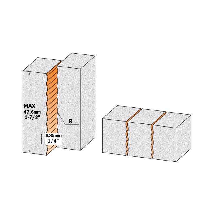 Frez do tworzenia połączeń w materiałach kompozytowych typu Solid Surface np. Corian. Szersza sfrezowana powierzchnia łączenia pozwala na uzyskanie bardzo mocnych połączeń.