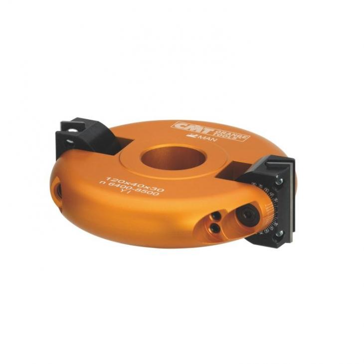 Głowica regulowana do skosów do frezarek dolnowrzecionowych i formatyzerek, średnica 160 mm, średnica otworu 30 mm firmy CMT ORANGE TOOLS.