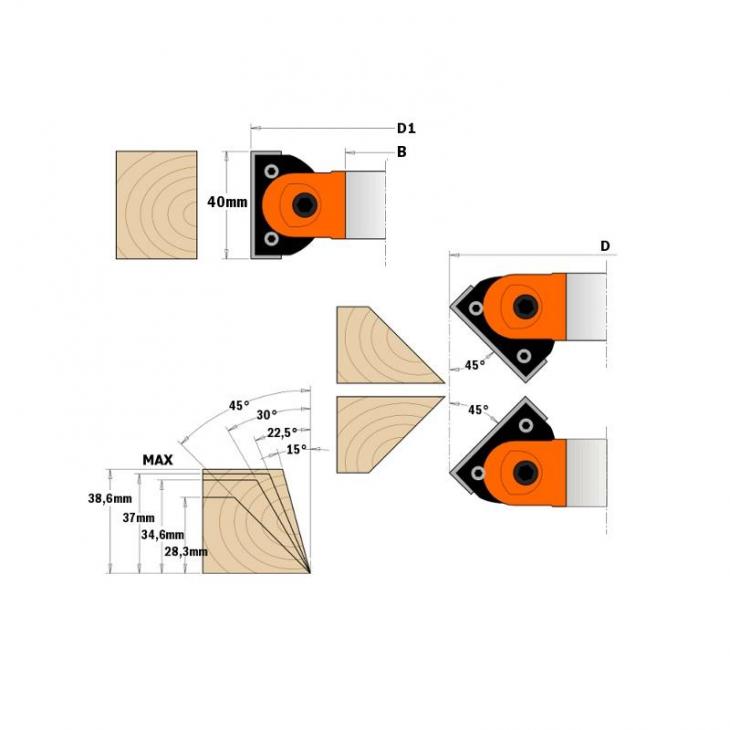 Głowica regulowana do skosów do frezarek dolnowrzecionowych i formatyzerek, średnica 120 mm, średnica otworu 30 mm firmy CMT ORANGE TOOLS.