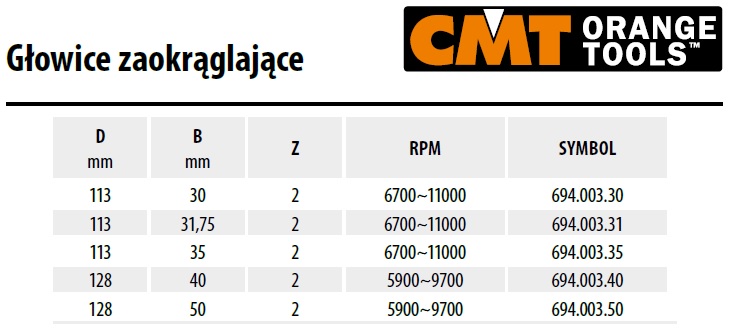 Głowica zaokrąglająca do frezarek dolnowrzecionowych i formatyzerek, średnica 128 mm, średnica otworu 50 mm firmy CMT ORANGE TOOLS.