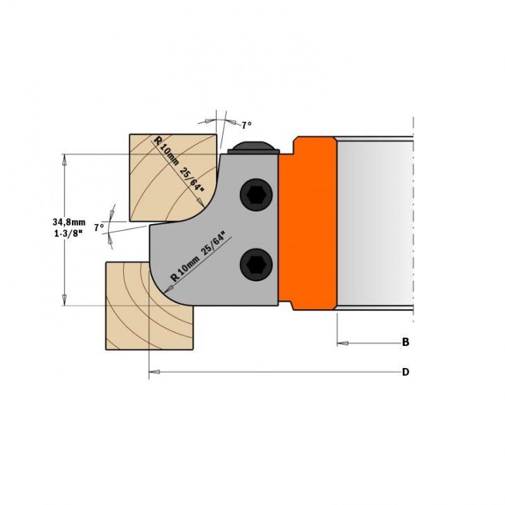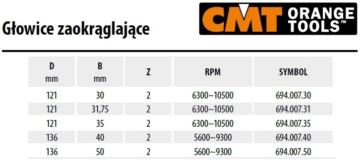 Głowica zaokrąglająca do mebli, drzwi i frontów kuchennych o średnicy D-121mm, otwór B-30mm do frezarek dolnowrzecionowych i formatyzerek CMT ORANGE TOOLS