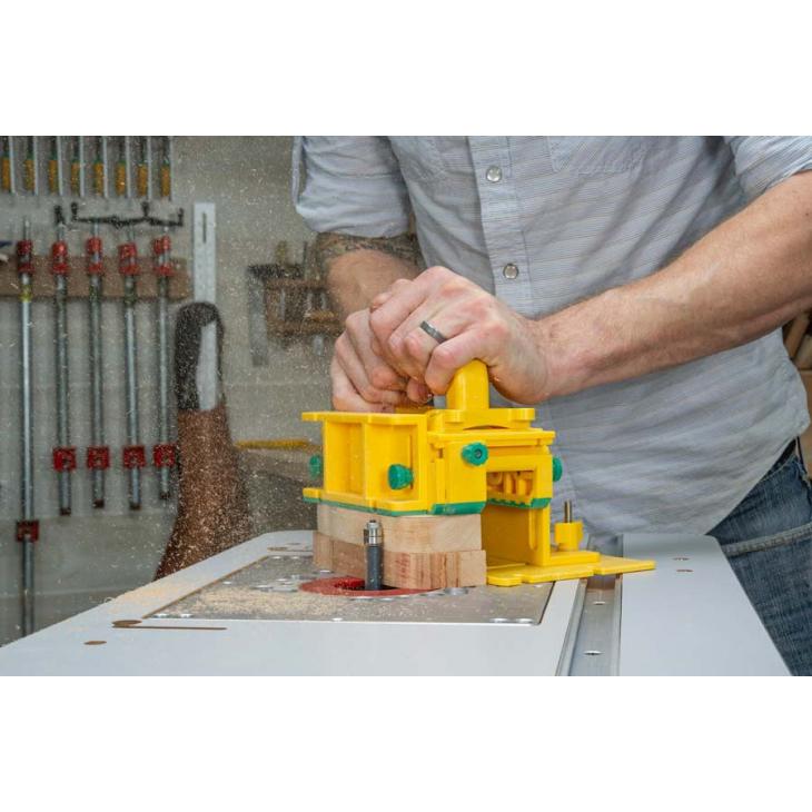 - GRR-RIPPER ślizga się po blacie stołu i wywiera równomierny nacisk na prowadnicę dłońmi z dala od ostrza. Równomierny nacisk oznacza mniejsze znoszenie ostrza, co zapewnia płynniejsze cięcia.