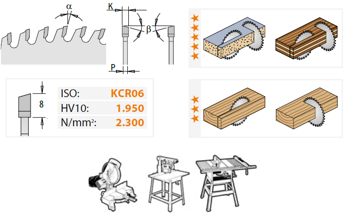 Przeznaczone do cięcia poprzecznego z najlepszym wykończeniem krawędzi.